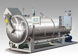 3、電腦程控全自動(dòng) ,恒溫、恒壓,回轉(zhuǎn)式,噴淋風(fēng)扇內(nèi)循環(huán)等系列臥式殺菌鍋。